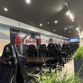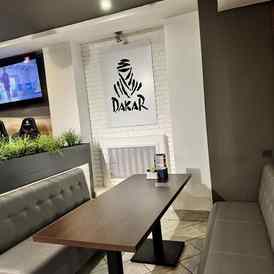 Здесь все стилизованно под «Дакар»: стулья в виде гоночных кресел, тематические граффити на стенах, многочисленная атрибутика (кубки, медали, образцы спортивной одежды с минувших спортивных состязаний). На входе — оригинальное колесо грузовика, принимавшего участие в ралли-рейде.