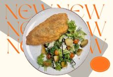 Филе цыпленка Кордон блю с салатом, сочной грушей и пикантным сыром Дор блю